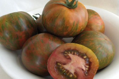 Croissance indéterminée. Mi-précoce. Cycle de 65 à 80 jours. Tomate très attractive par ses couleurs noires à rayures vert doré, de 100 à 150 g et de 5 à 6 cm de diamètre. Saveur douce et fruitée.