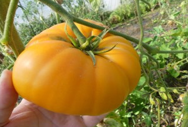Croissance indéterminée. Mi-précoce. Cycle de 75 à 85 jours, originaire Croissance indéterminée. Mi-précoce. Cycle de 75 à 85 jours, originaire de Russie. Gros fruit lisse et charnu orangé doré, rond légèrement aplati, d’un poids de 180 grammes à 1 kg, en bouquet de 3 à 4 fruits. Goût fruité doux sucré et légèrement épicé. Chair ferme, dense avec peu de graines. Très bonne productivité. Bonne résistance au fendillement.