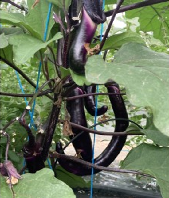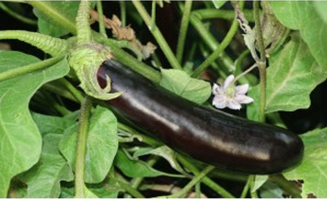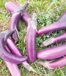 Tardive. Cycle de 80 à 90 jours. Fruit violacé, long, mince et incurvé pouvant atteindre 20 à 30 cm de long et 2,5 à 5 cm de diamètre. Chair douce et moelleuse d’un blanc pur. Belle variété japonaise rustique et vigoureuse. Productivité uniforme et adaptée à la culture de plein champ et sous abri.