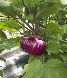 Précoce. Cycle de 70 jours. Fruit rond de 200 à 400g et de 15 cm de diamètre, à l’épiderme lisse, brillant d’un violet soutenu. Plante vigoureuse de 50 cm avec en moyenne 10 fruits par pied. Variété rustique et résistante aux maladies.