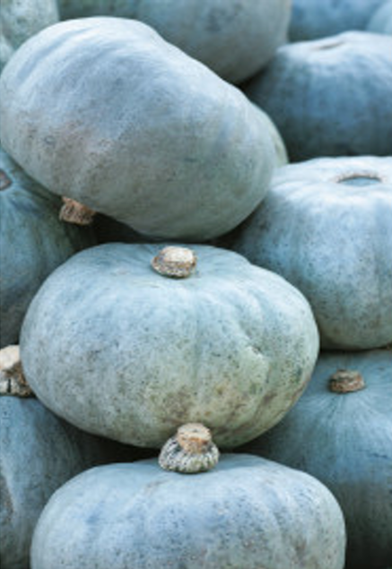Type maxima. Variété coureuse. Cycle de 100 jours. Fruit de 1 à 1,5 kg, Type maxima. Variété coureuse. Cycle de 100 jours. Fruit de 1 à 1,5 kg, écorce bleu gris, de 13 à 20 cm de diamètre. Production de 3 à 5 fruits par pied La courge phare des chefs ! Superbe complexité aromatique se rapprochant de la châtaigne, onctueuse et sucrée, chair ferme, à cuisiner en salé ou sucré ! Conservation : 3 à 6 mois.