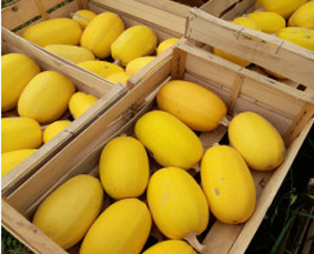Type charentais «Cantaloup». Variété précoce. Fruit rond d’environ 1 kg à l’écorce lisse et vert pâle, moyennement à peu écrite. Chair orange juteuse et très savoureuse