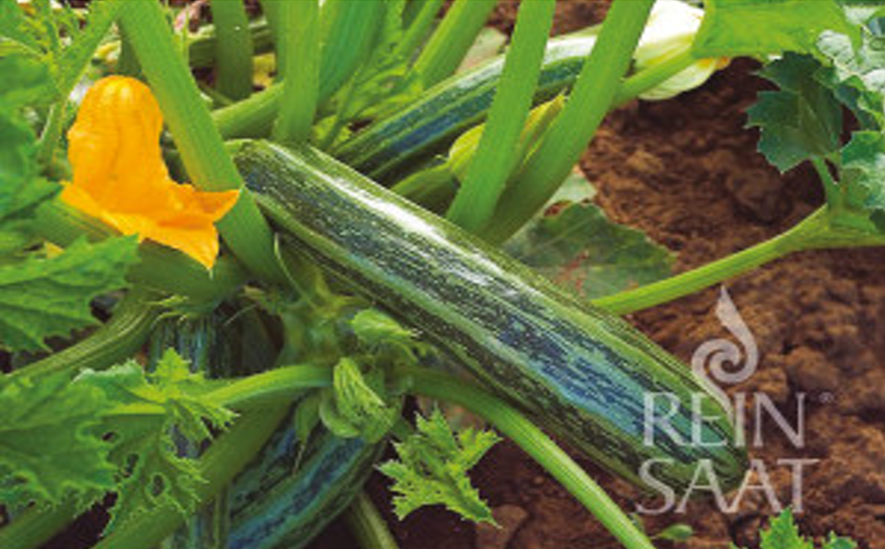 Précoce. Cycle de 55 jours. Port buissonnant. Fruit allongé vert légèrement marbré aux entre-nœuds courts. Très bonne productivité, excellente conservation. Plein champ
