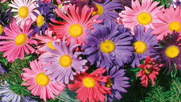 Aster d’été, originaire de Chine. Plante annuelle à feuilles caduques aux fleurs simples de plusieurs couleurs. Utilisation en massif et fleurs coupées. Aime les expositions plein soleil et résiste à de faibles gelées. Hauteur de la plante : 80 cm.