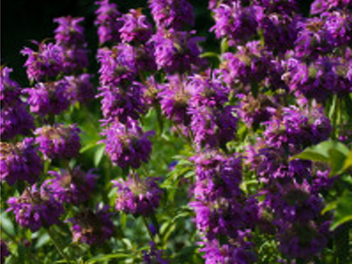 Plante vivace herbacée au port dressé. Inflorescences de couleur rose fushia comestibles. Connue pour son feuillage à l'odeur de citron. Tolère un sol sec et nécessite peu d'eau. Exposition soleil ou mi-ombre. Hauteur de la plante : 80 cm.