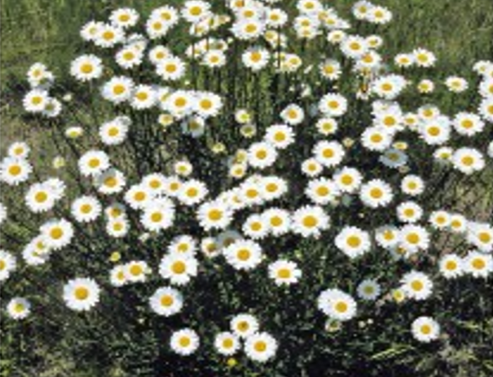 Plante herbacée vivace au port dressé. Fleurs de couleur blanc pur au coeur jaune. Exposition ensoleillée peu exigeante au niveau du sol. Hauteur de la plante : 60 cm.