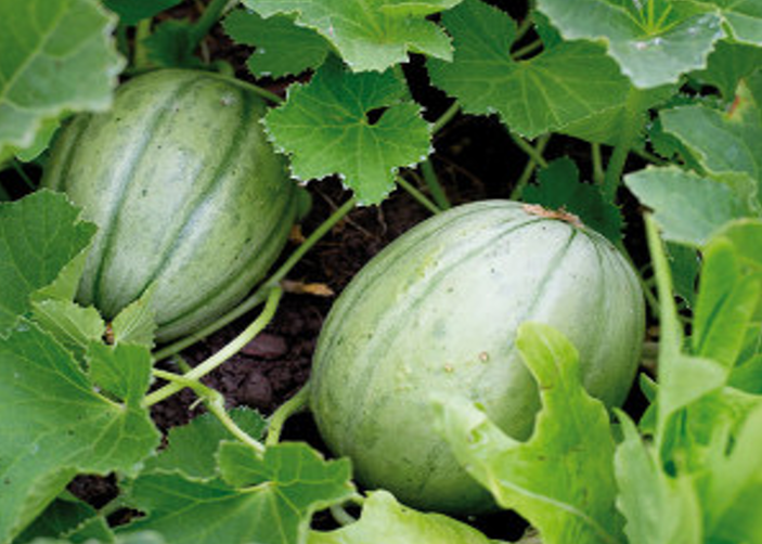 Type charentais. Cycle court. Fruit allongé de 1 à 2 kg, brodé et côtelé dont l’écorce vire du vert clair au vert foncé à maturité. Chair orange, parfumée et très sucrée. Variété ancienne, facile à conduire et très productive. Ne nécessite pas de taille. Bonne nouaison en conditions